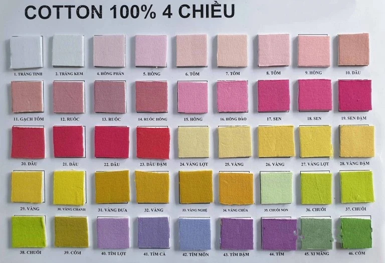 Cotton: Là chất liệu phổ biến và dễ chịu, có độ thoáng khí tốt, dễ vệ sinh và bền.