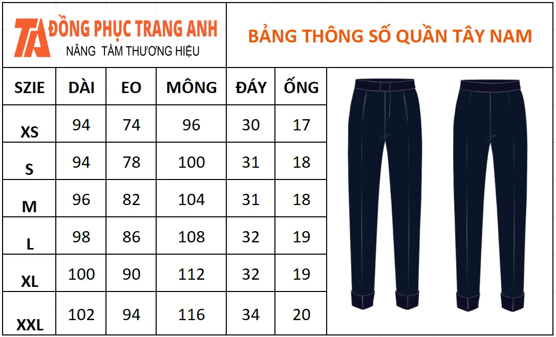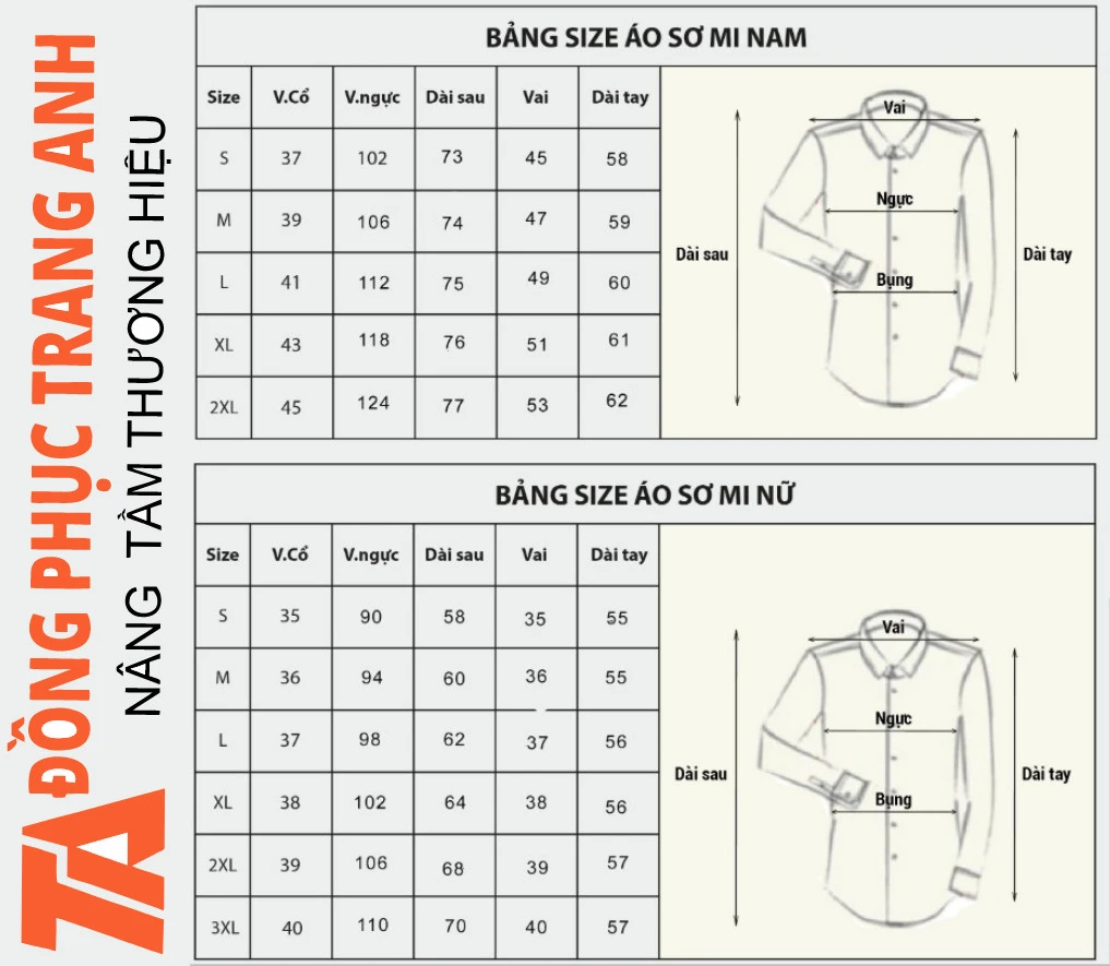 Bảng size sơ mi, quần tây