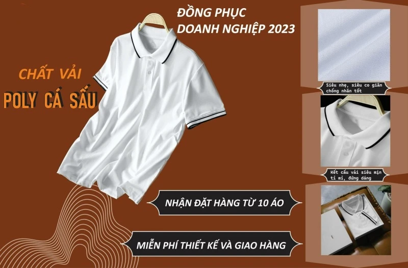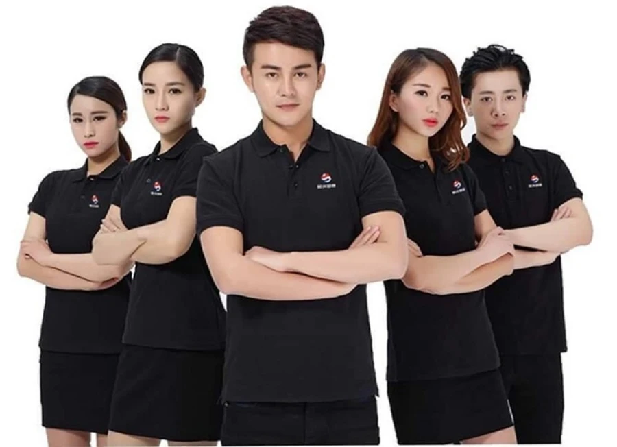 Thiết kế cổ bẻ, in logo và slogan độc lạ sẽ là điểm thu hút mọi ánh nhìn, đặc biệt là ấn tượng của khách hàng.
